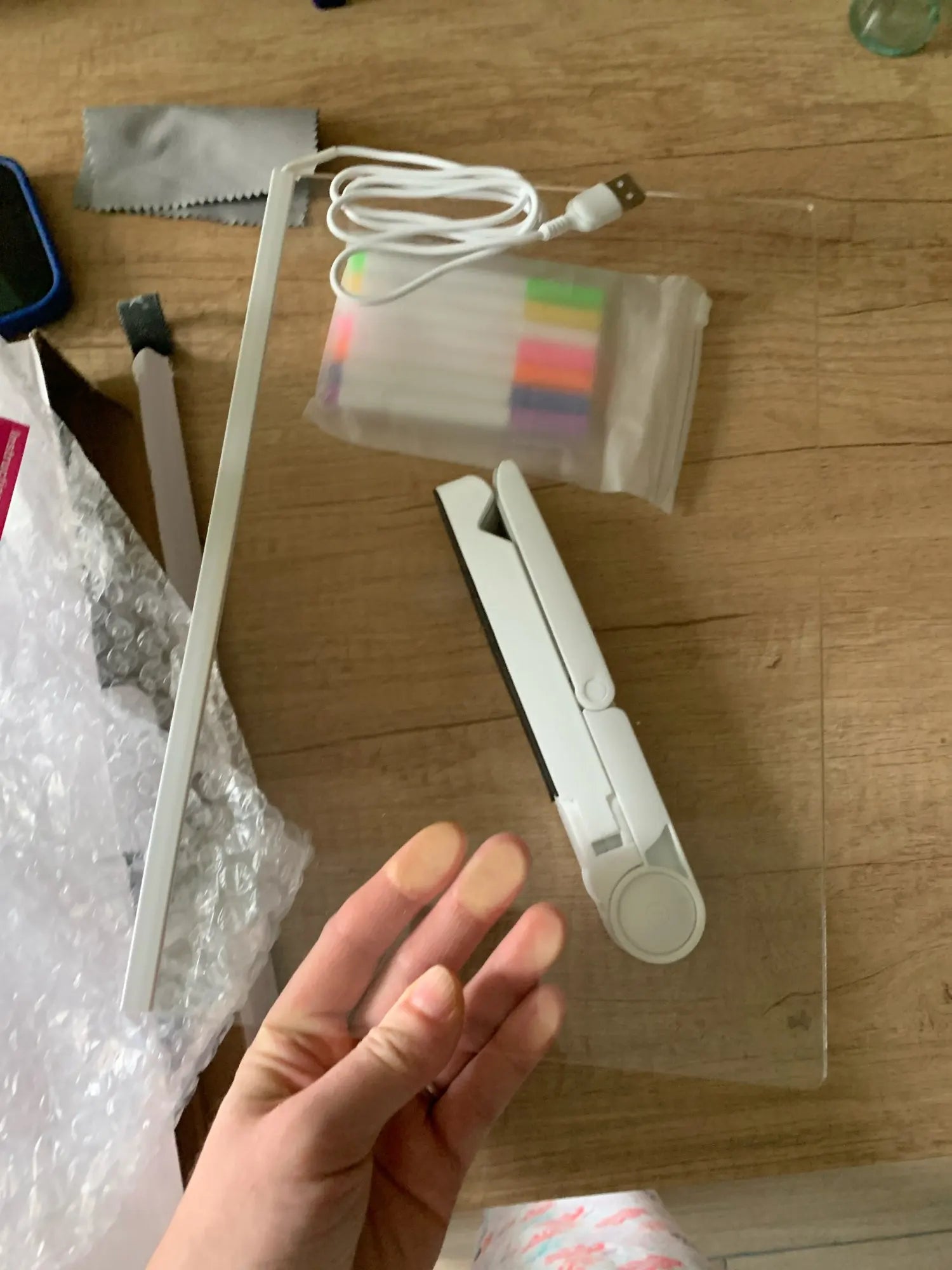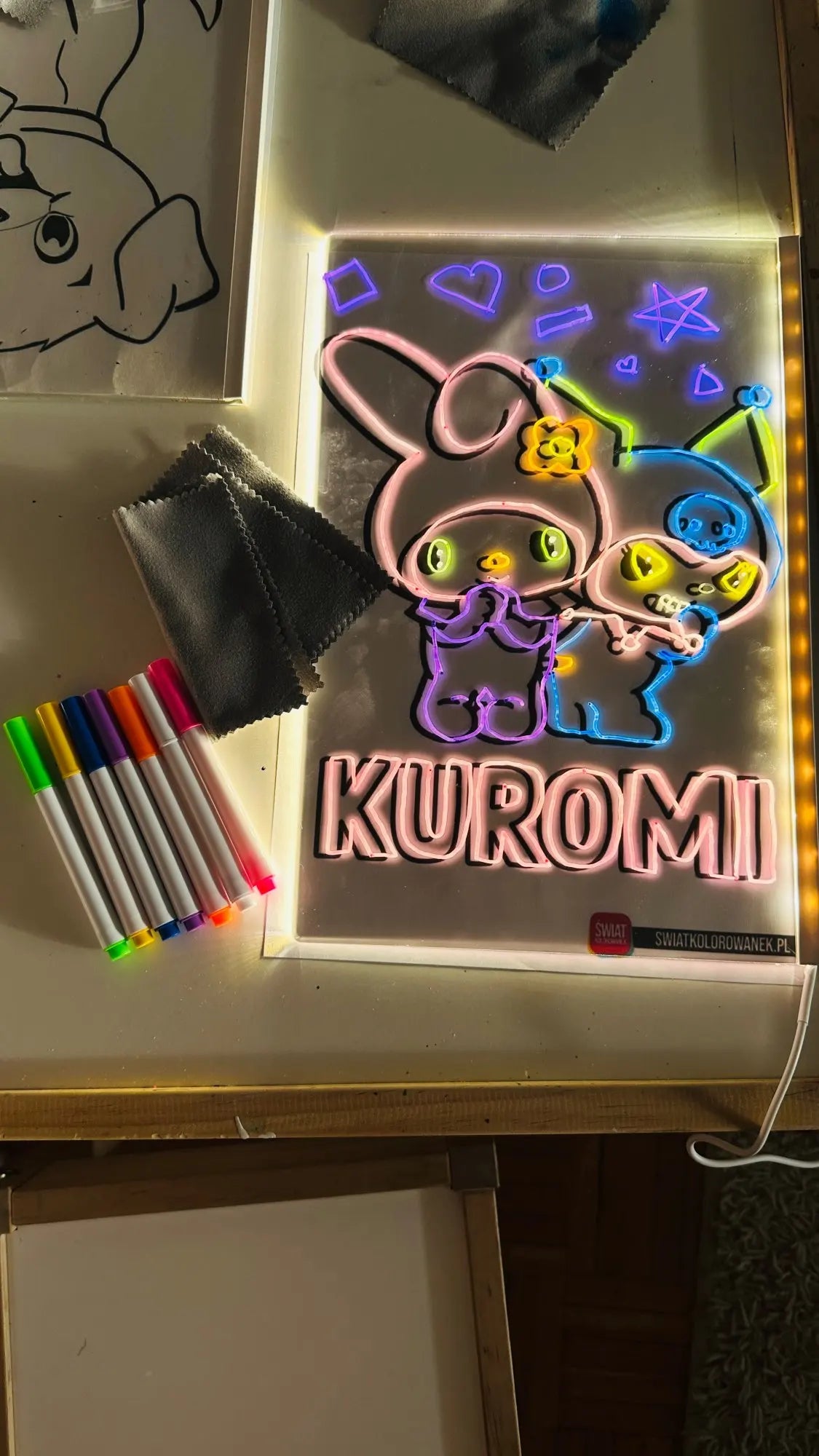 Solo conectamos el cable USB, elegimos un plumon, dibujamos y es increible como empieza a brillar.
